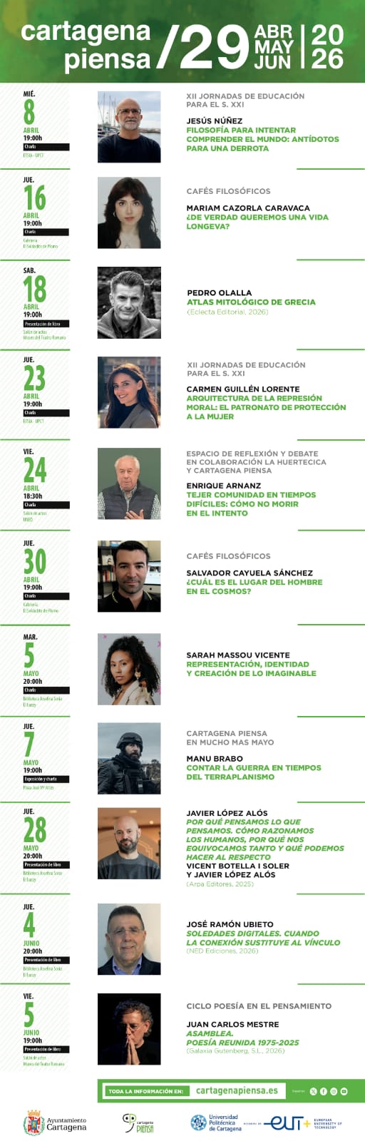 Martes, 3 de marzo, e la ETSINO (Escuela Técnica Superior de Ingeniería Naval y Oceánica) del campus Alfondo XIII de la UPCT, a las 19h. MESA REDONDA: 𝗟𝗮 𝗶𝗻𝘃𝗲𝘀𝘁𝗶𝗴𝗮𝗰𝗶𝗼́𝗻 𝗲𝗻 𝗹𝗮 𝗥𝗲𝗴𝗶𝗼́𝗻 𝗱𝗲 𝗠𝘂𝗿𝗰𝗶𝗮 𝗲𝗻 𝗹𝗮 𝗨𝗣𝗖𝗧 (𝗝𝗼́𝘃𝗲𝗻𝗲𝘀 𝗜𝗻𝘃𝗲𝘀𝘁𝗶𝗴𝗮𝗱𝗼𝗿𝗲𝘀) Intervienen: -Javier Andrés (microelectrónica) -Francisco A. Lloret (Industria 5.0) -Ivan Rojo…